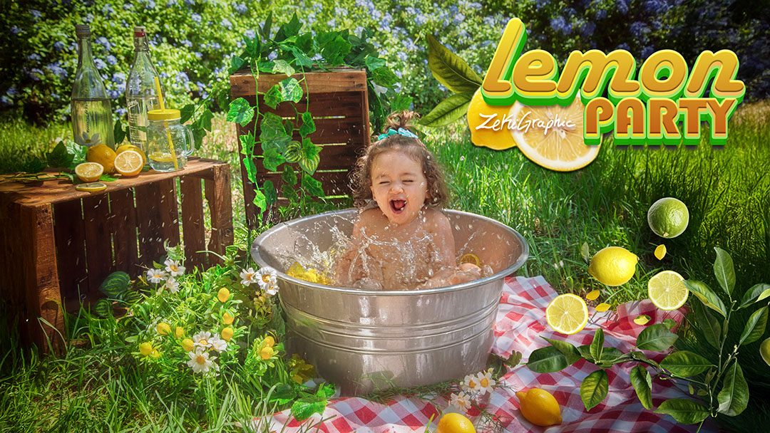 La sesión “Lemon Party” es una propuesta exclusiva y creativa para familias con bebés de entre 6 meses y 2 años. Todo gira en torno a un decorado rústico veraniego donde los protagonistas son el agua, una bañera, ¡y muchos limones!