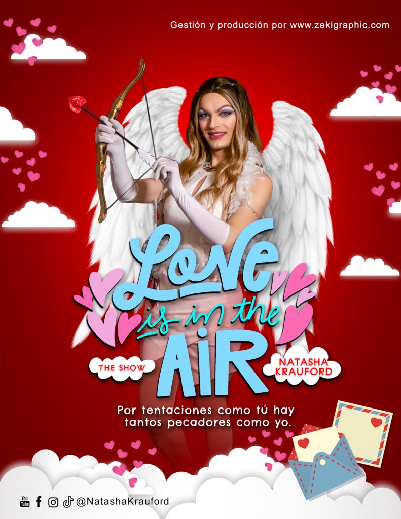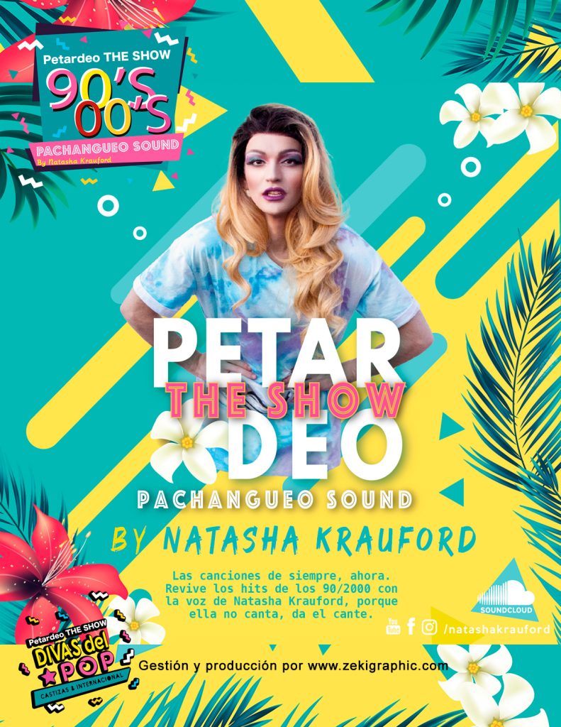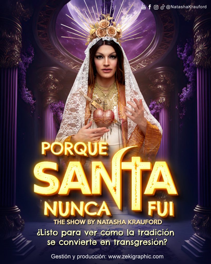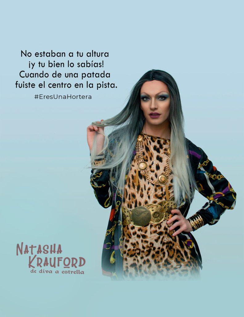 Natasha Krauford, cantautora drag murciana, tras coronarse en sus mejores fiestas en Chueca (viviendo en Madrid durante 5 años), actualmente reside en Murcia y se encuentra recorriendo el sur de España con su propio show. Lleva al escenario una variedad de covers de éxitos de divas del pop adaptados al castellano. Porque no es lo mismo escuchar que entender.