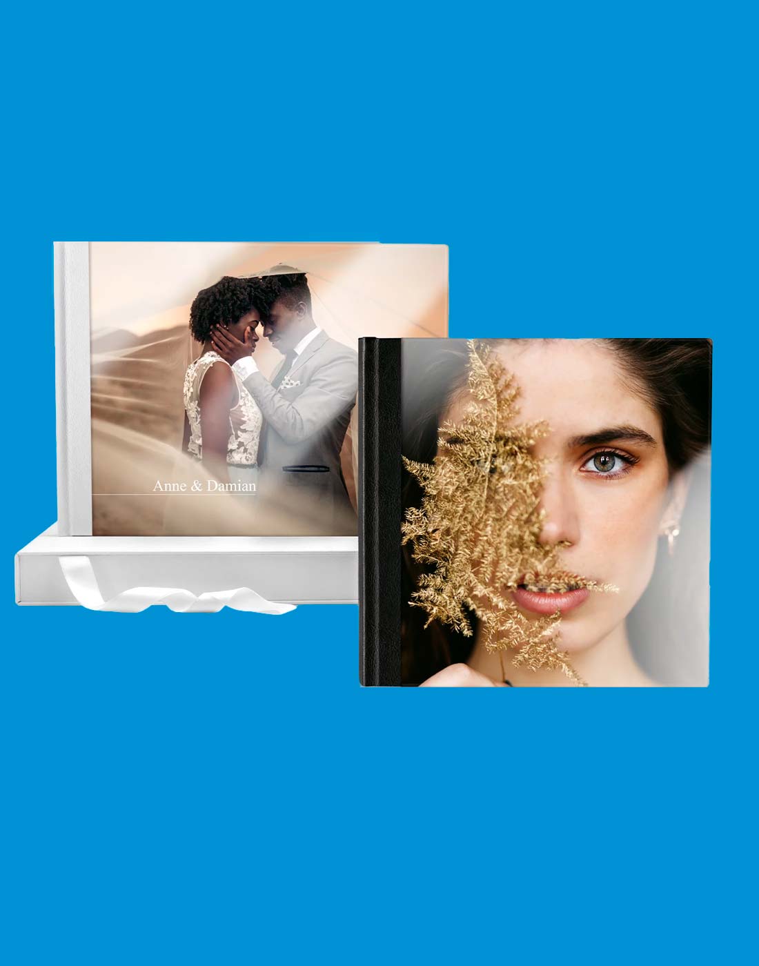 - 30×30 cm – formato grande para bodas, sesiones de fotografía profesional o proyectos creativos especiales.