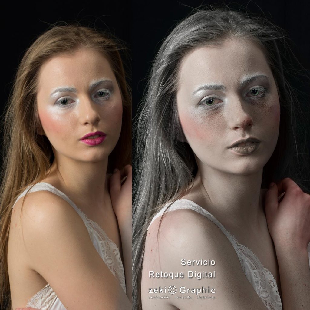 - Retoque de piel, brillo, color, imperfecciones, coloreado.