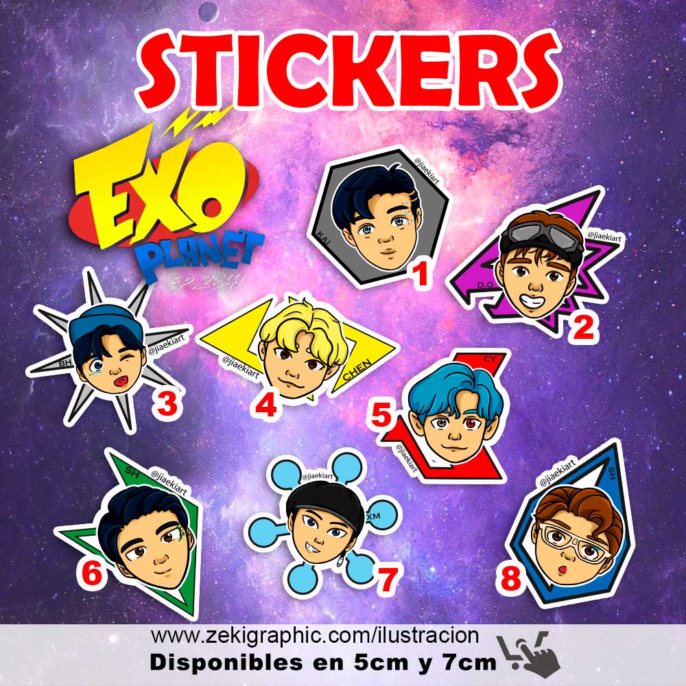 Ilustraciones de @jiaekiart en forma de pegatinas.
