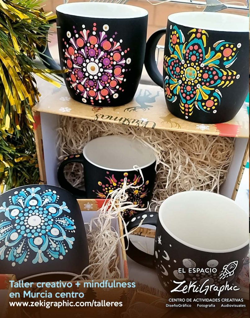 - Crearás tu propia taza con un mandala único y personal.