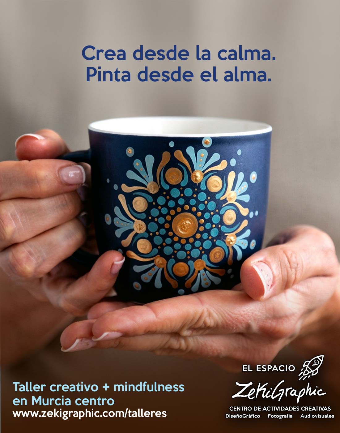 - Crearás tu propia taza con un mandala único y personal.