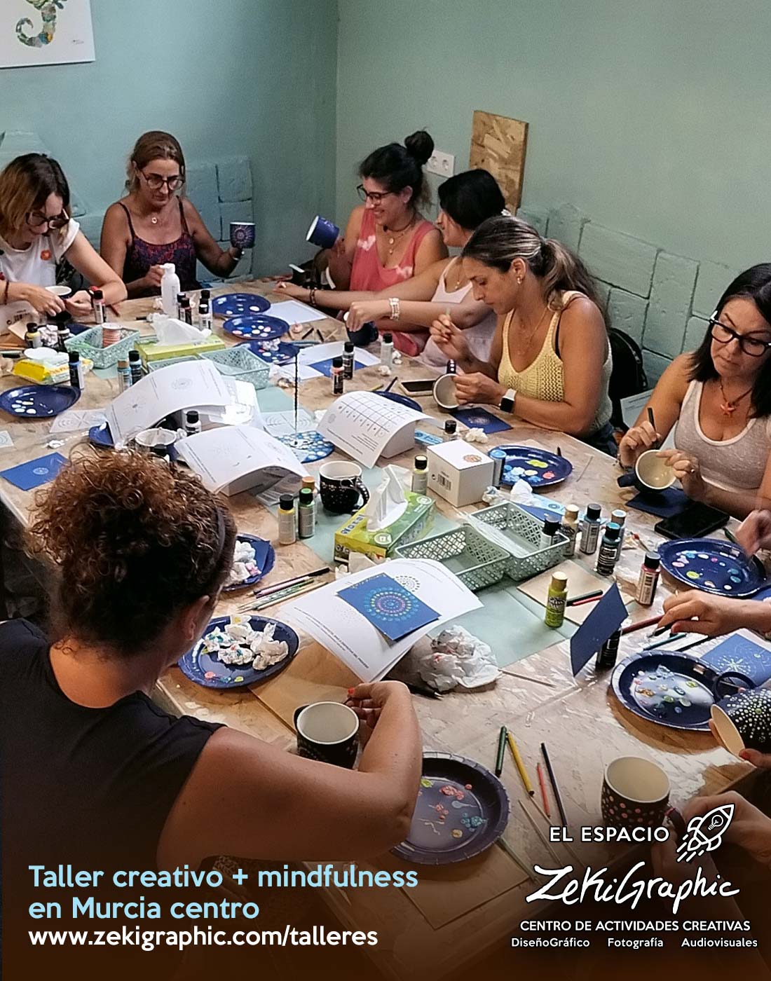Realizar el taller en nuestro centro “El Espacio ZekiGraphic”, ubicado en Murcia centro, con capacidad para grupos desde 8 hasta 12 personas.