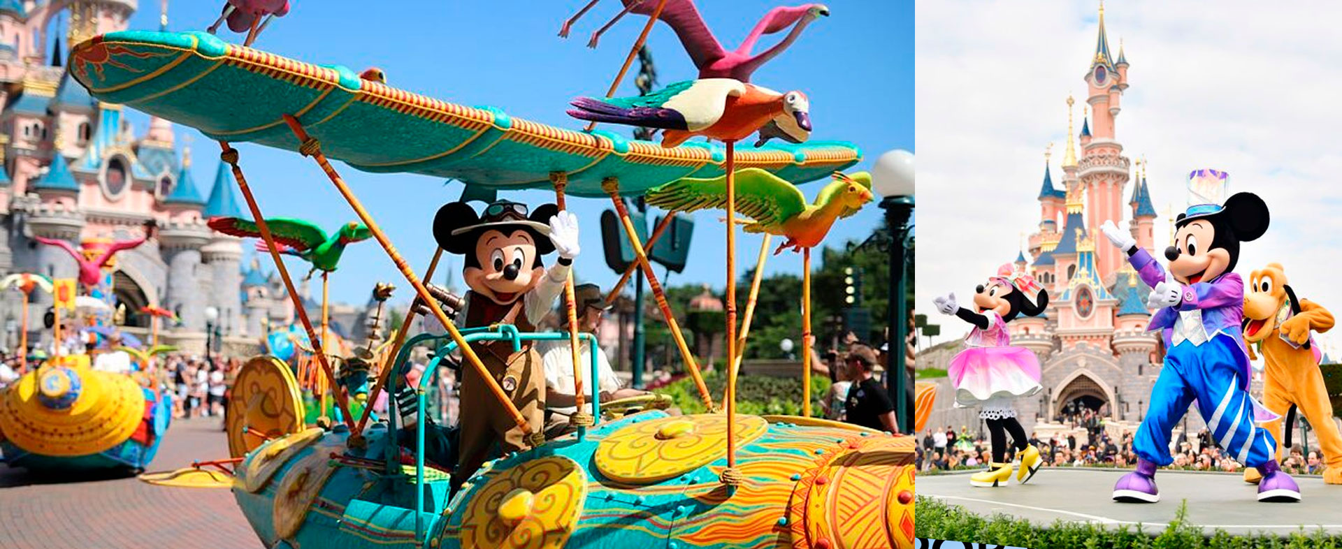 Monumentos y Desfiles: No te pierdas los icónicos castillos de “Disneyland” y “Disney Studios”. Además, podrás disfrutar de desfiles espectaculares que te sumergirán en el mundo de Disney, con personajes que cobran vida ante tus ojos.